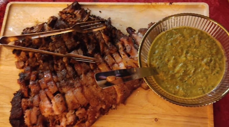 * חזה בקר בעישון הדרים ולווי רוטב צ'ימיפסטו